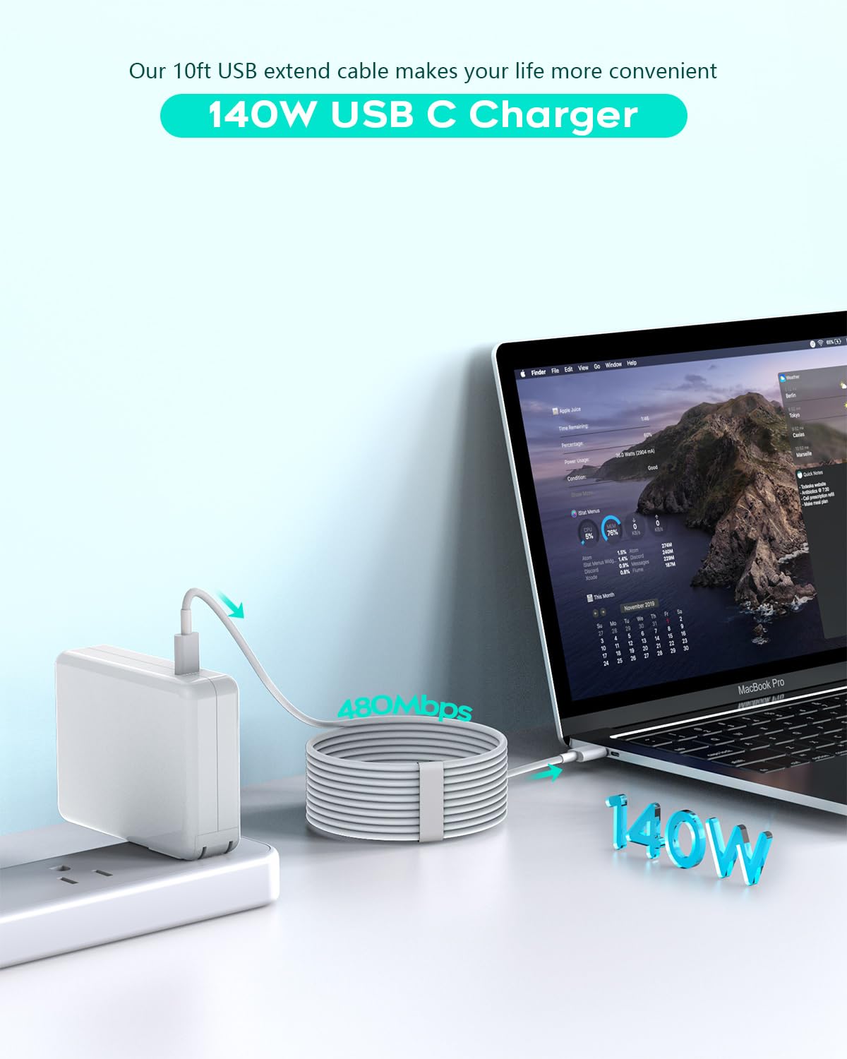 -(10feet/3m) USB C to C charging cable let you can work and charge your laptop anywhere.