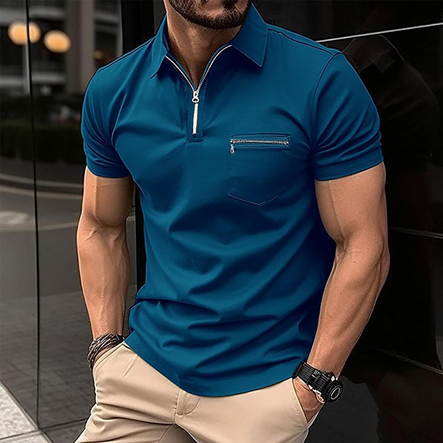 HUCHPI Mens Shirts Short Sleeve Classic Button V Neck Basic Shirt Sport LigSolid Color Tees Golf Stylish Tops