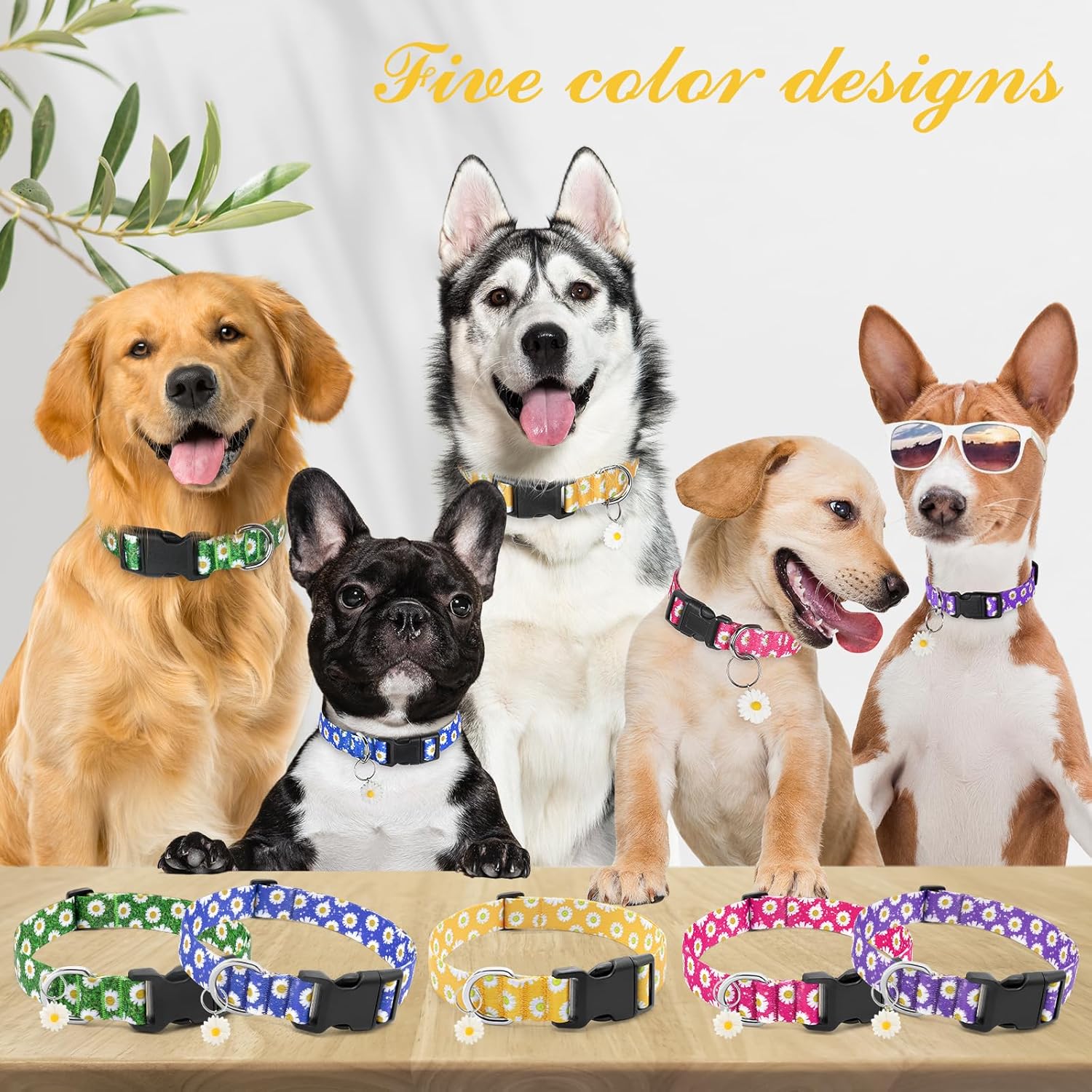 BiPawTi Dog Collars – Cute Flower Collar for Small Dog with Daisies Charms, Pretty Floral Dogs Collar for Female Dogs Puppy Girls Boys Pet (S, Yellow)