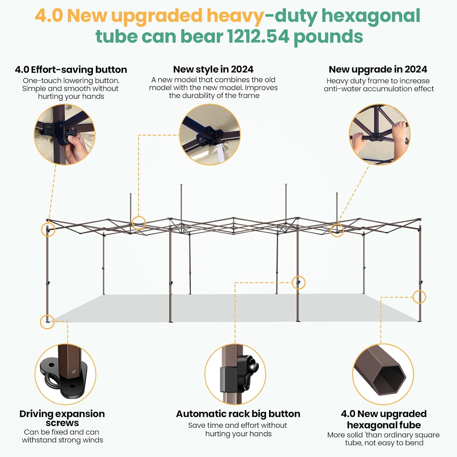 COBIZI 10×30 Pop up Heavy Duty Canopy Tent with 8 Sidewalls, Commercial Outdoor Gazebo, Easy Setup Event Party Tent for Wedding Waterproof & UV50+,4.0 Hexagonal Thickened Legs with Hand Bags(Khaki)