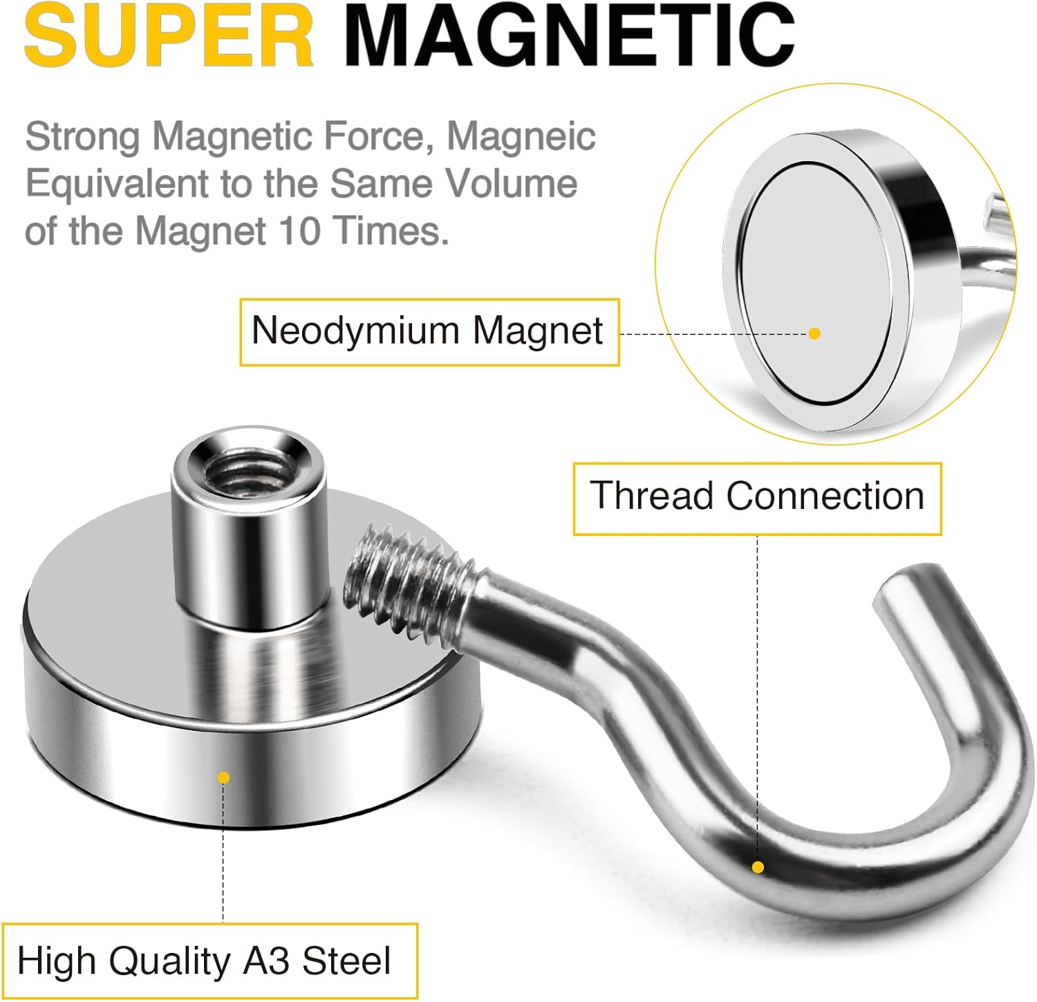 DIYMAG Strong Magnetic Hooks, 50lbs Heavy Duty Rare Earth Magnets with Hook Strong Corrosion Protection Facilitate Hook Pack of 6