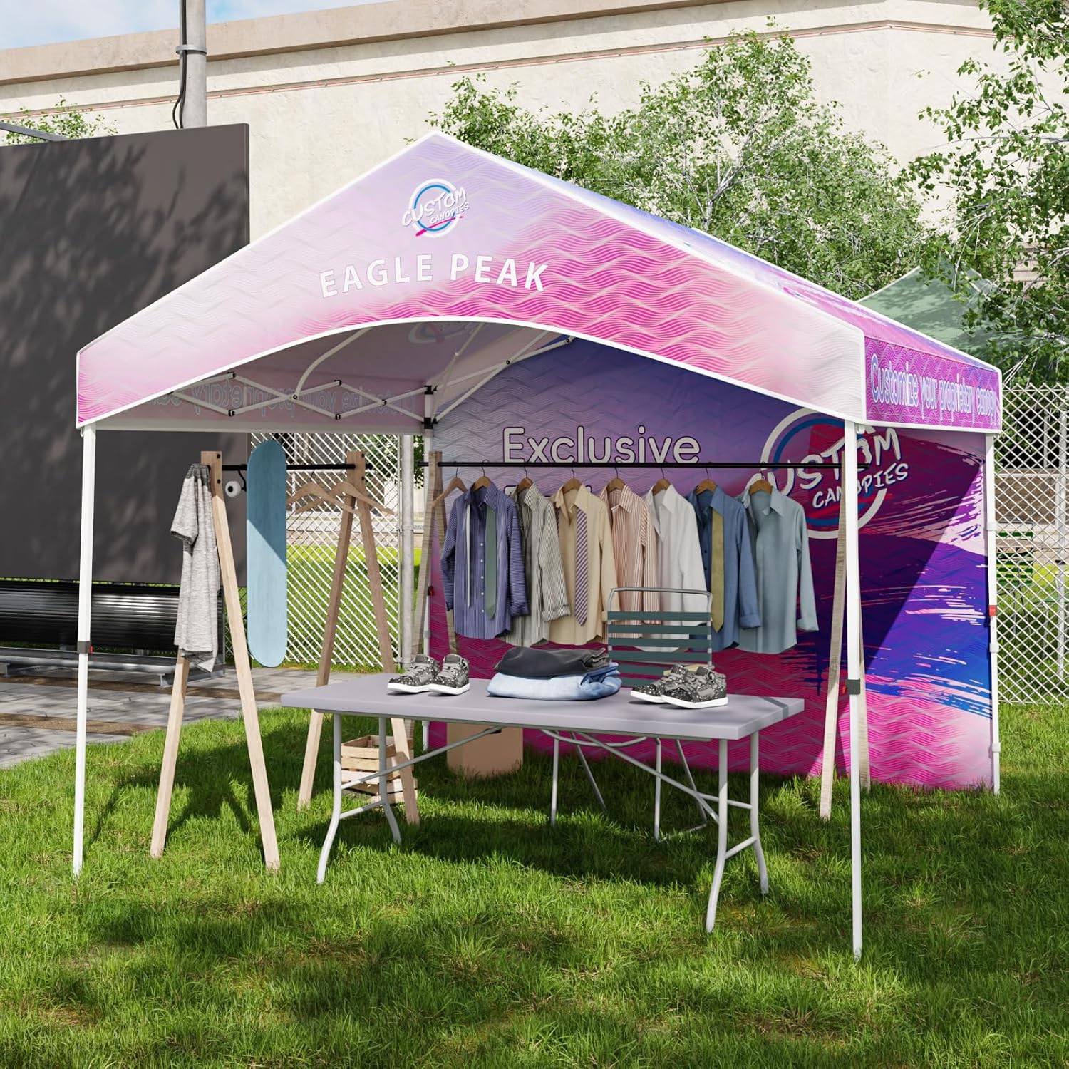 EAGLE PEAK 10×10 Alps Custom Commercial Canopy with 1 Wall Panel and Gable Roof, Pop Up Custom Canopy Tent with Logo, Vendor Branded with Logo for Events, Markets, and Tradeshows