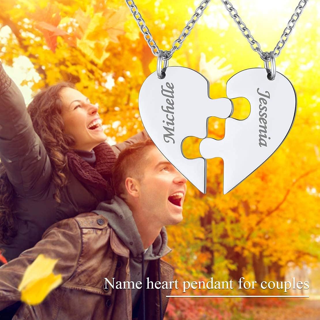 FindChic Personalized Matching BFF Necklace for 2/3/4/5/6 Puzzle Name Heart Pendant Stainless Steel Couple Necklace Set Customized Necklaces for Teen Girls