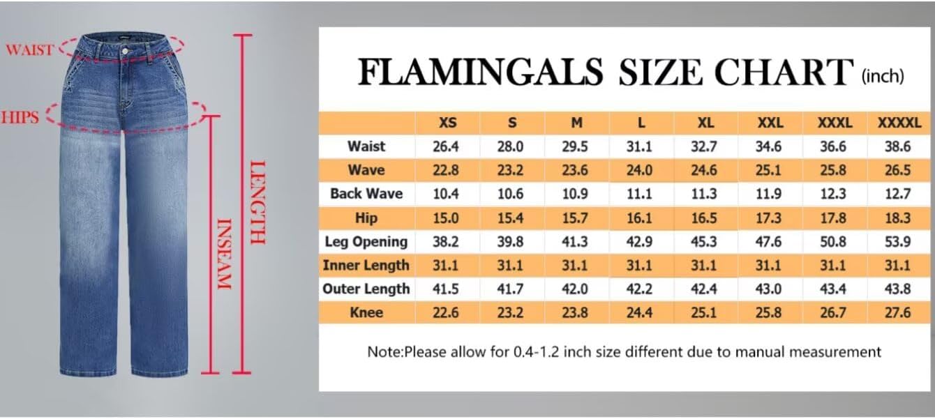 Be the first to review “Flamingals Wide Leg Jeans for Women Mid Waist Baggy Stitch Decor Denim Washed Pants Without Belt”