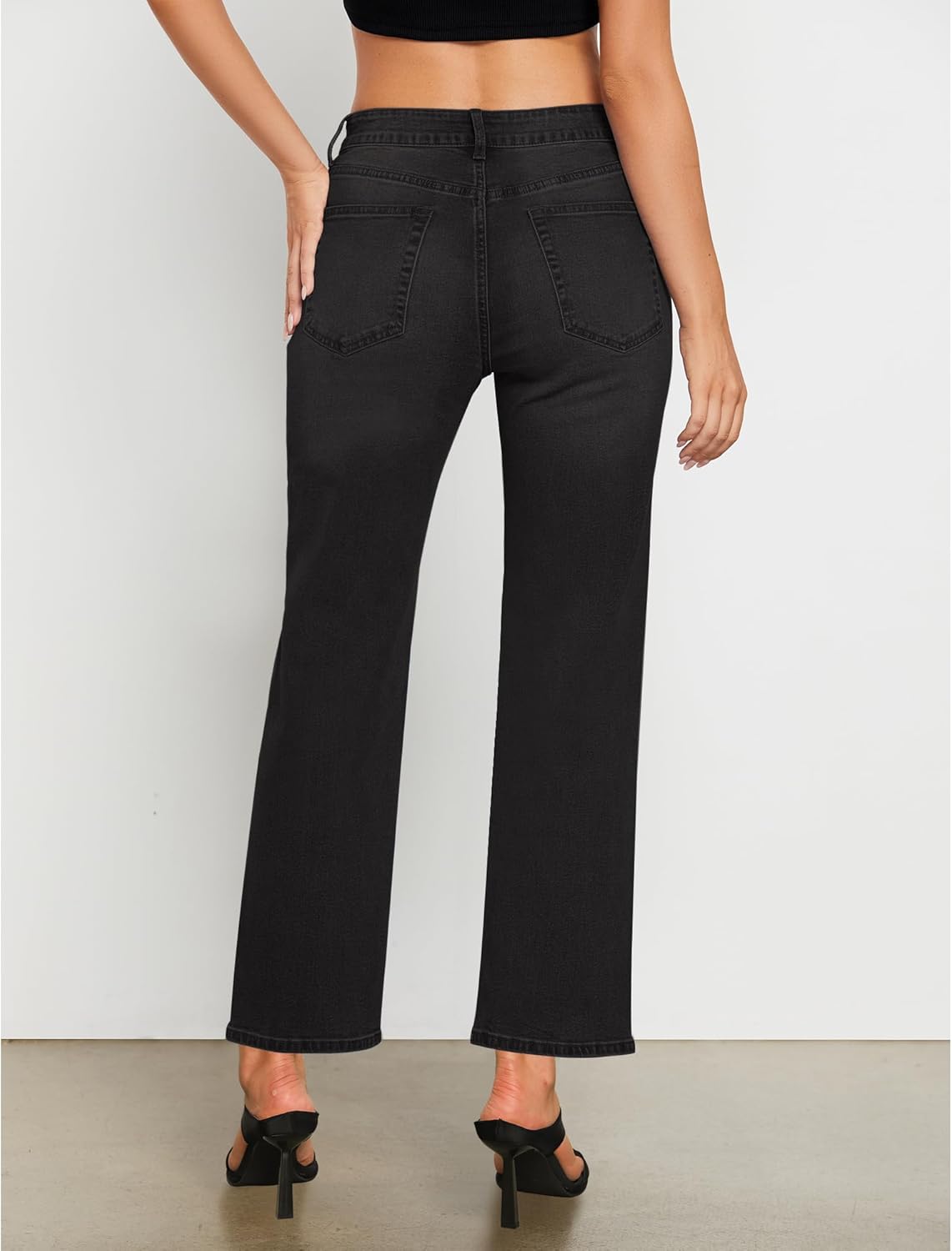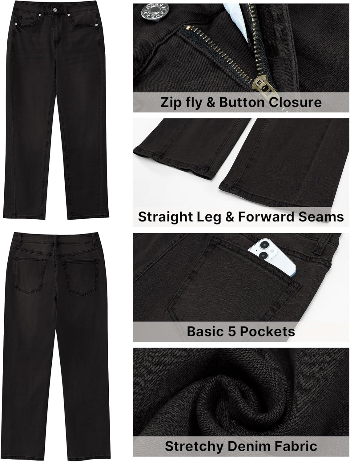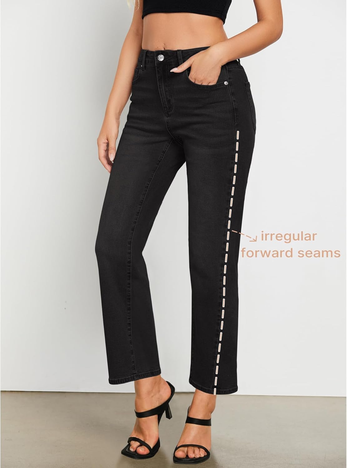 GRAPENT Straight Leg Jeans for Women High Waisted Trendy Ankle Length Forward Seams Stretchy Denim Pants Baggy Jeans