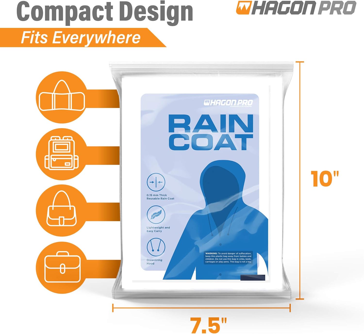 Hagon PRO Rain Coats (2 Pack) – EVA Rain Poncho for Women and Men, Reusable Raincoat
