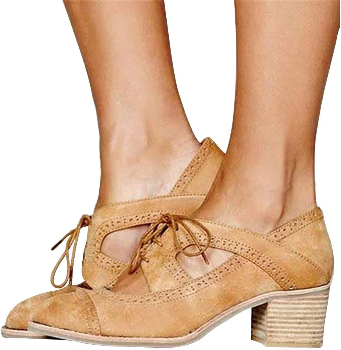JITUUE Oxford Shoes for Women Chunky Heels Brogue Leather Saddle Dress Shoes Lace up Vintage Wingtip Ankle Boots