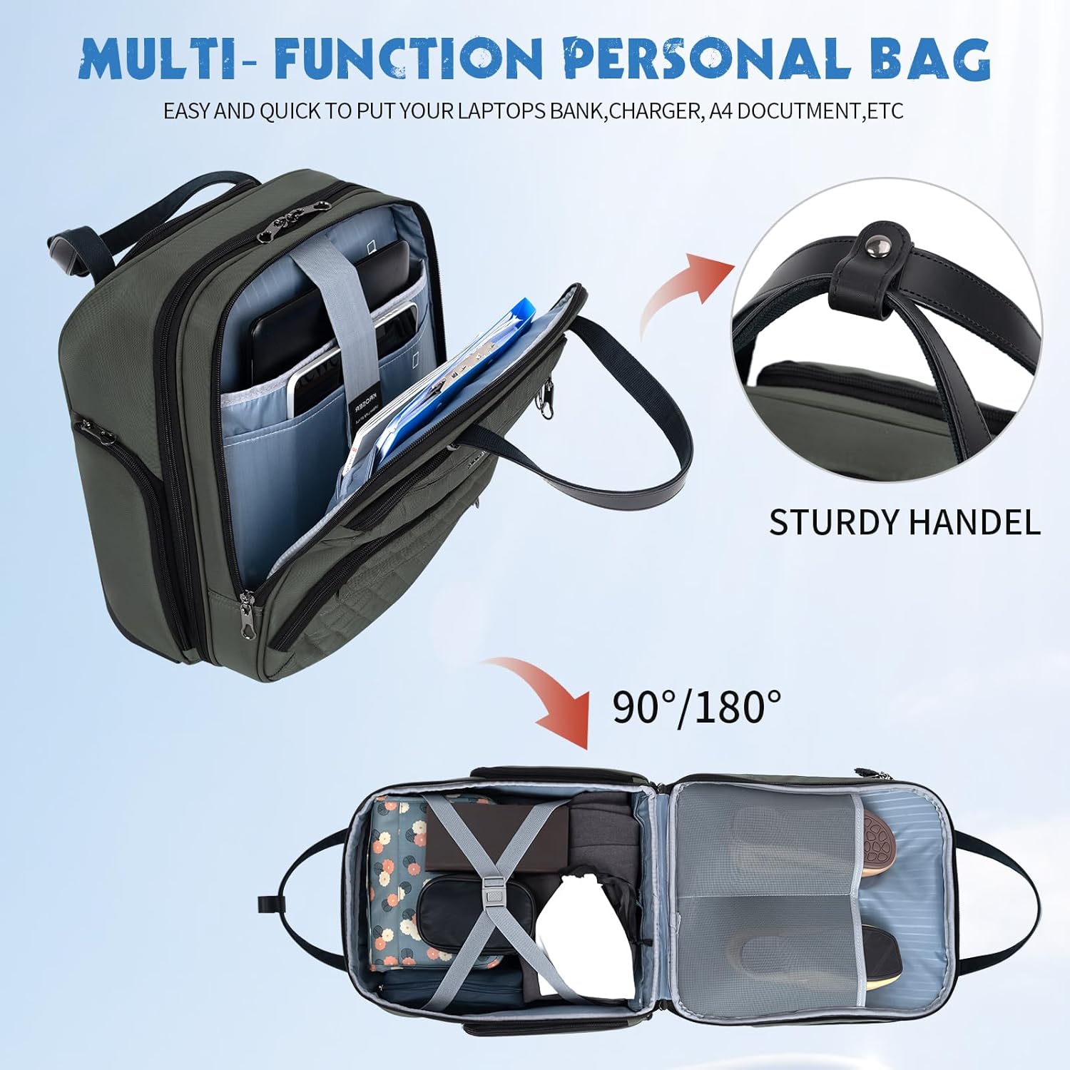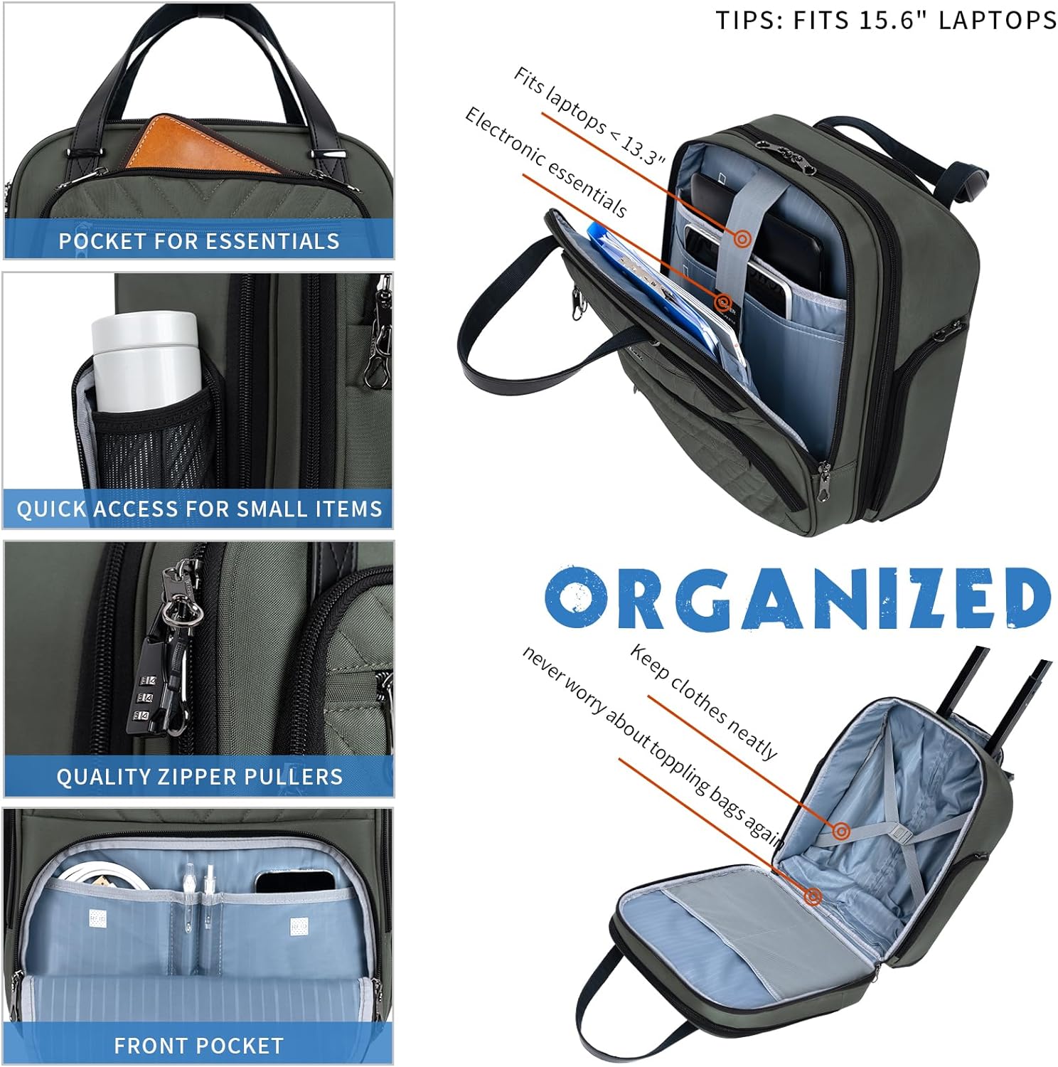 KROSER Carry On Underseat Multi-functional, 16-inch Underseater Lightweight Overnight Suitcase for Women, Army Green