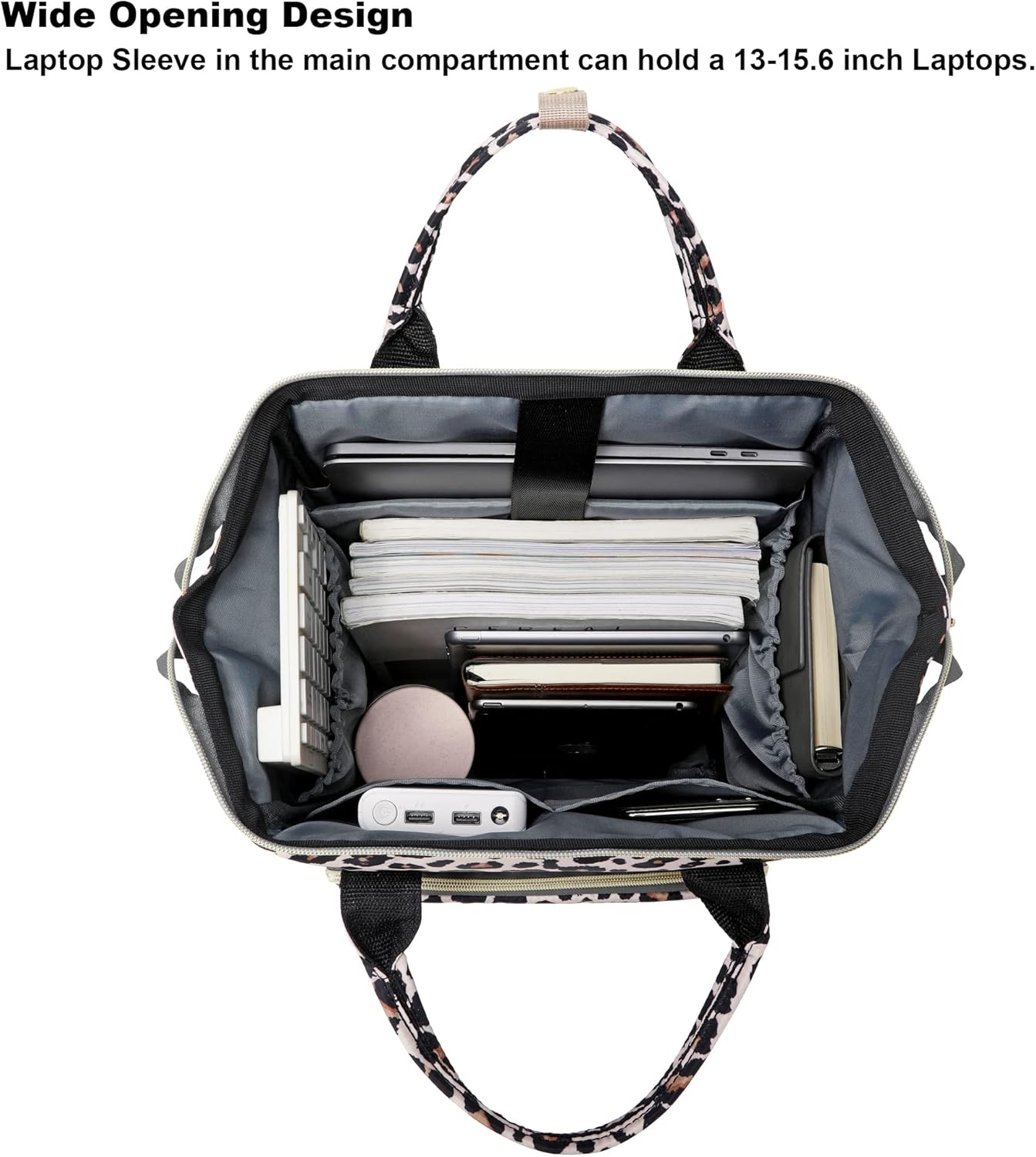 Leopard Women Laptop Backpack, College School Backpack Bookbag 15.6 Inch Computer Backpacks for Work Business Travel