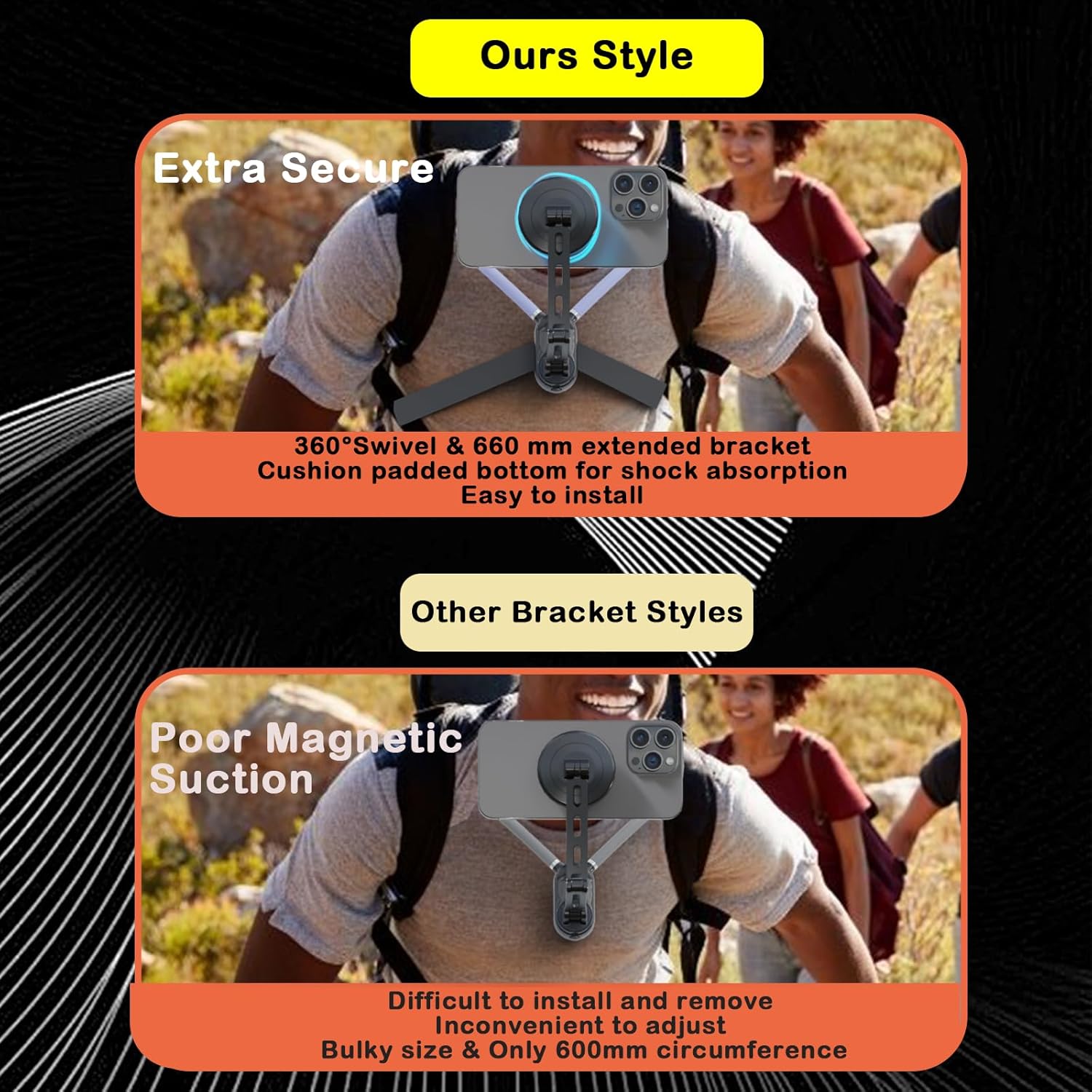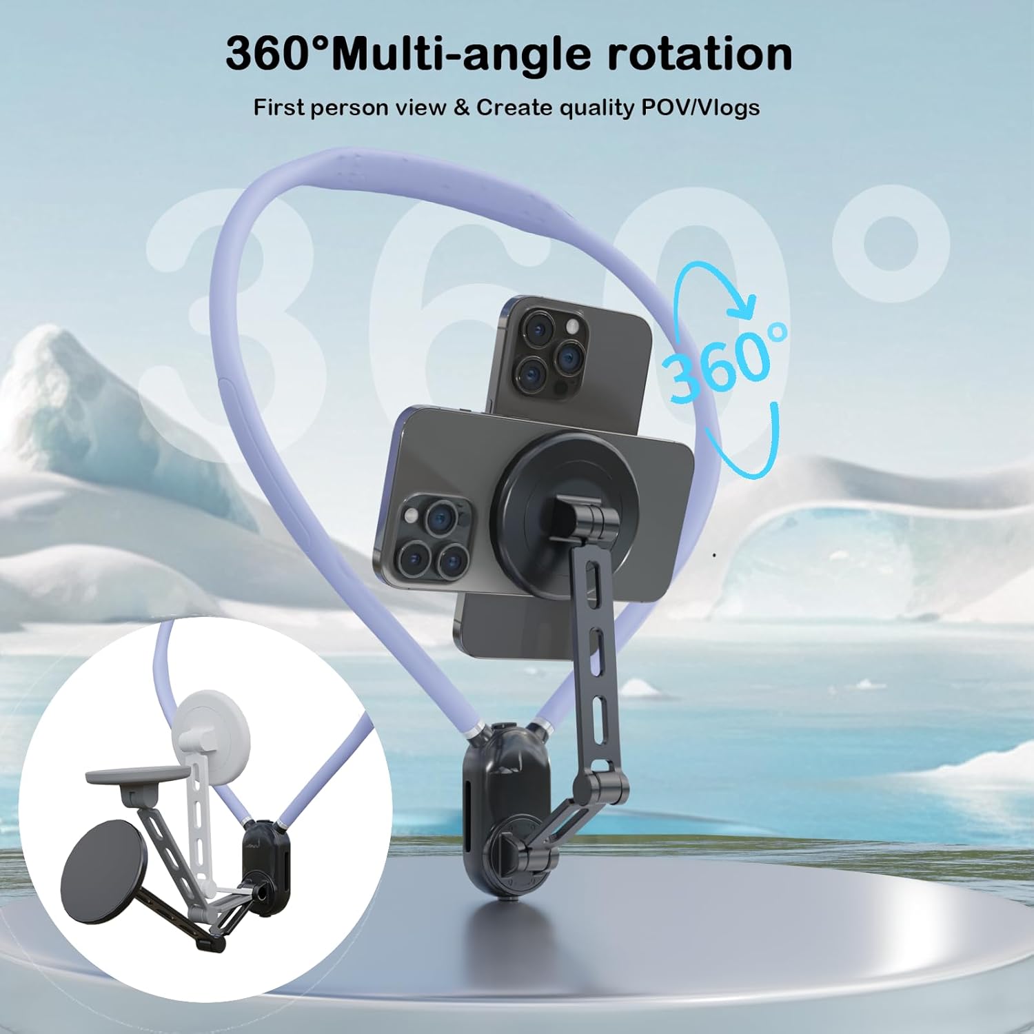【Shoot Anywhere & Quick Detachable Design】The mobile phone holder hanging around your neck is equipped with one-button quick detachable technology, say goodbye to the tedious installation and removal process, just one-button unlocking, quick operation. This lightweight, portable adjustable neck mount ensures that you can shoot wherever you are, truly plug and play, easy to wear