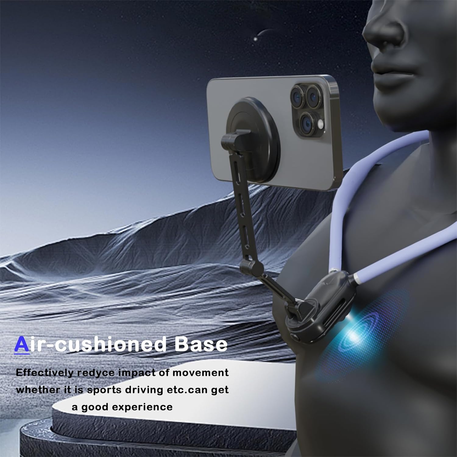 【STRONG MAGNETIC & ANTI-SHAKE DESIGN】This neck phone holder has multiple strong magnets built into the magnetic ring, which ensures that your phone can be firmly attached; You can shoot without worrying about dropping your phone; In addition, this mobile phone holder is also equipped with a safety rope and strap to increase stability and anti-shaking, suitable for both static and dynamic, stable film