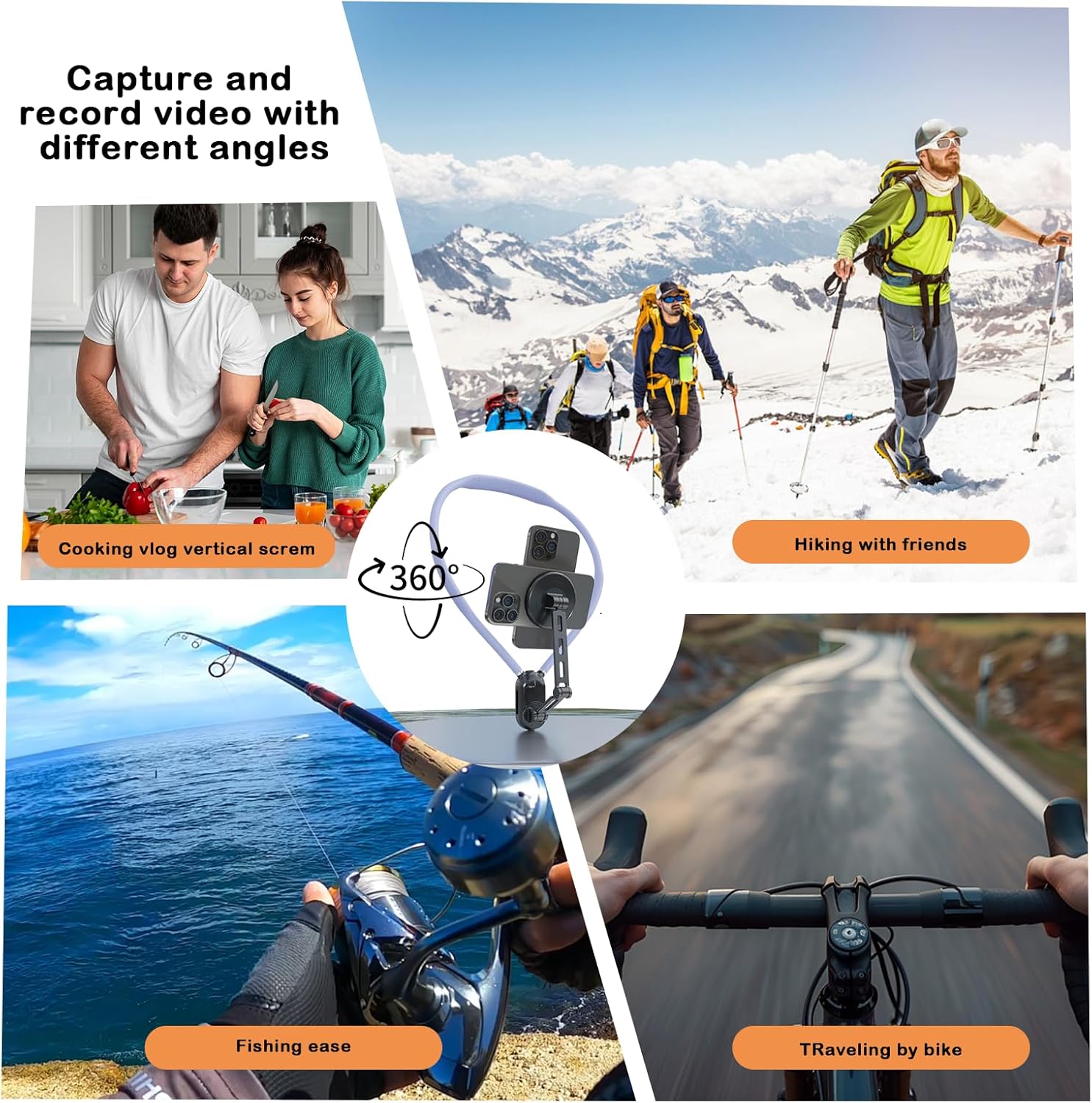 【VLOG/POV Shooting】Do you want to free your hands when you want to shoot some cooking, travelling videos, etc.? If so then we this direct is perfect for you, whether you are cooking, unpacking, fishing, crocheting or live streaming, this mount can meet your needs. Simply place your mobile phone on the magnetic mount around your neck and you will be able to create your videos from a first person perspective, very convenient