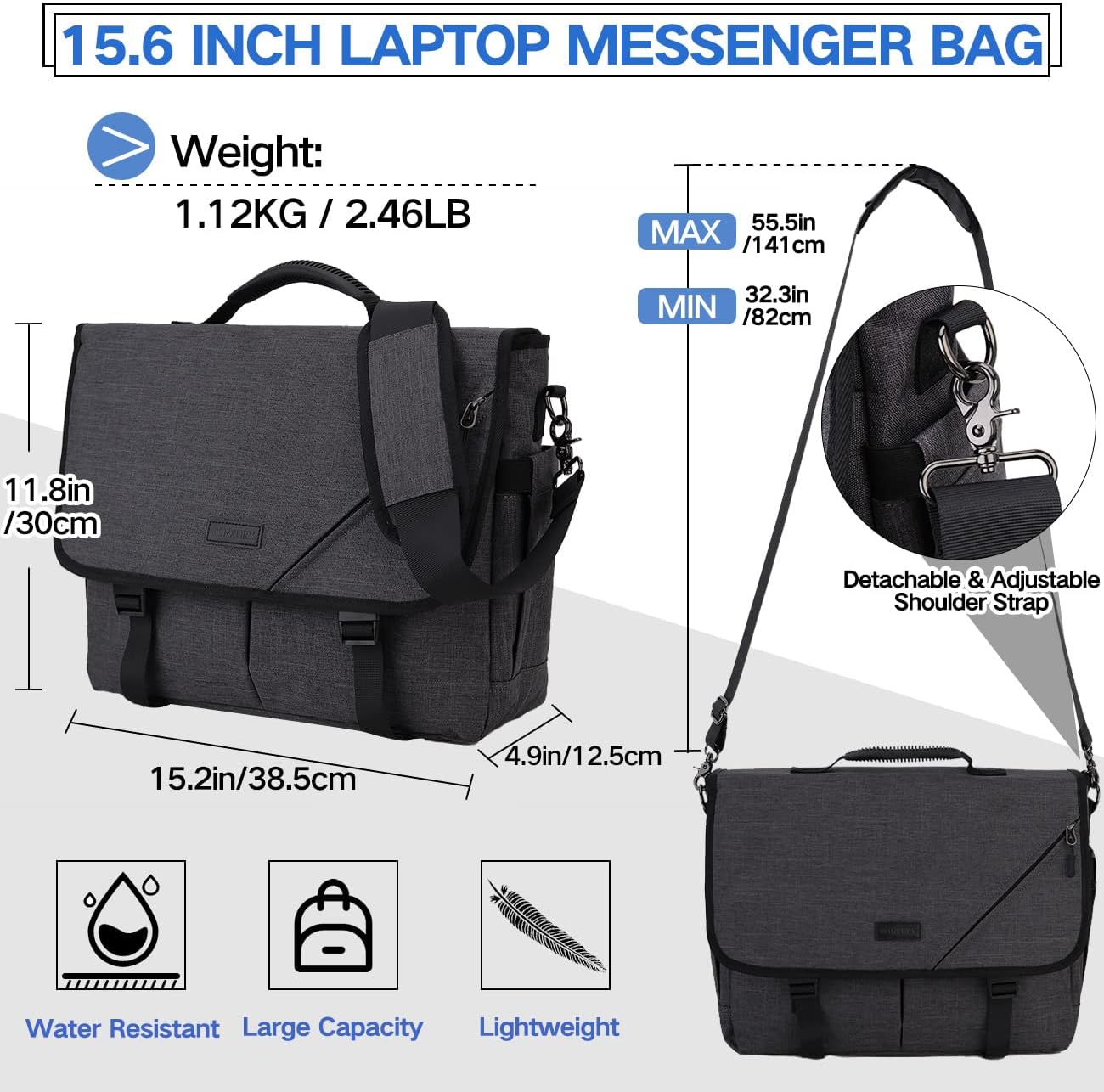 Messenger Bag for Men, Lightweight Water Resistant 15.6 In Laptop Bag Business Office Satchel Shoulder Bag
