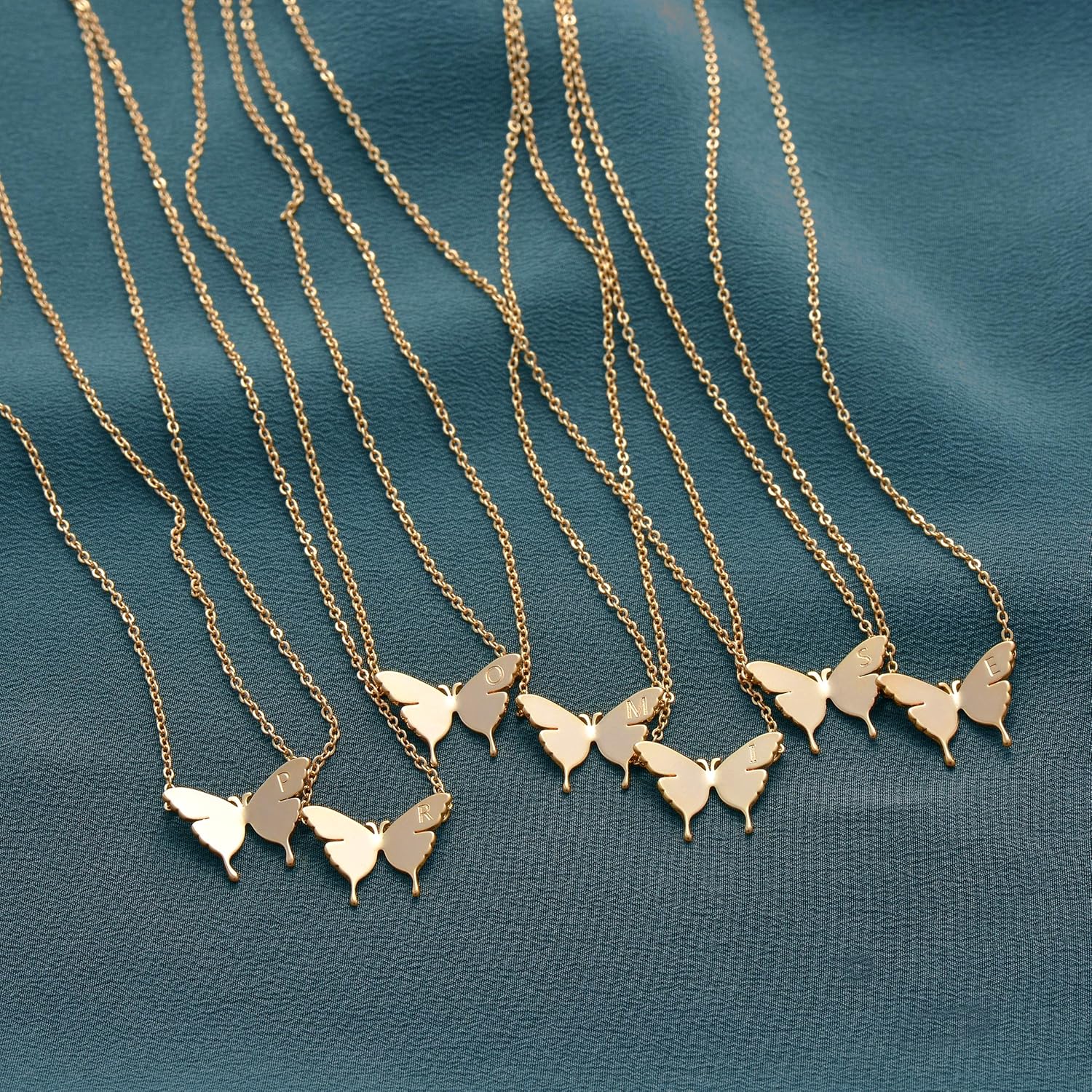MEVECCO Gold Dainty Initial Necklace 18K Gold Plated Butterfly Pendant Name Necklaces Delicate Everyday Necklace for Women Minimalist Personalized Jewelry