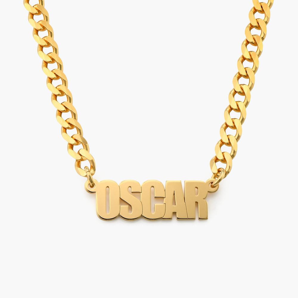 MYKA – Personalized Unisex Name Necklace with Thick Gourmette Cuban Chain – Customized Jewelry – Gift for Men and Women