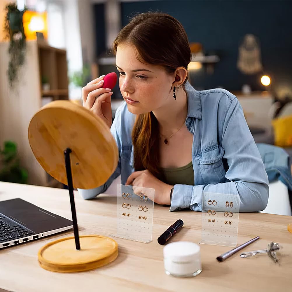 42 Holes: 42 holes showing earring, 21 pairs of earrings (maximum), 4pcs of small earring holders totally, can keep your studs or earrings in good order. (Please tear off white protective film before use. )