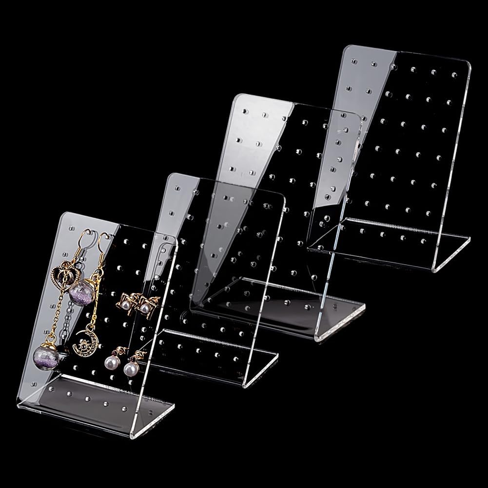 PH PandaHall 4 Pack Earring Holder, 42 Holes Small Ear Studs Display Stand L-Shape Earrings Jewelry Show Rack Stand Organizer Plastic Display Showcase 2.3 x 3.5 x 1.5 Inch