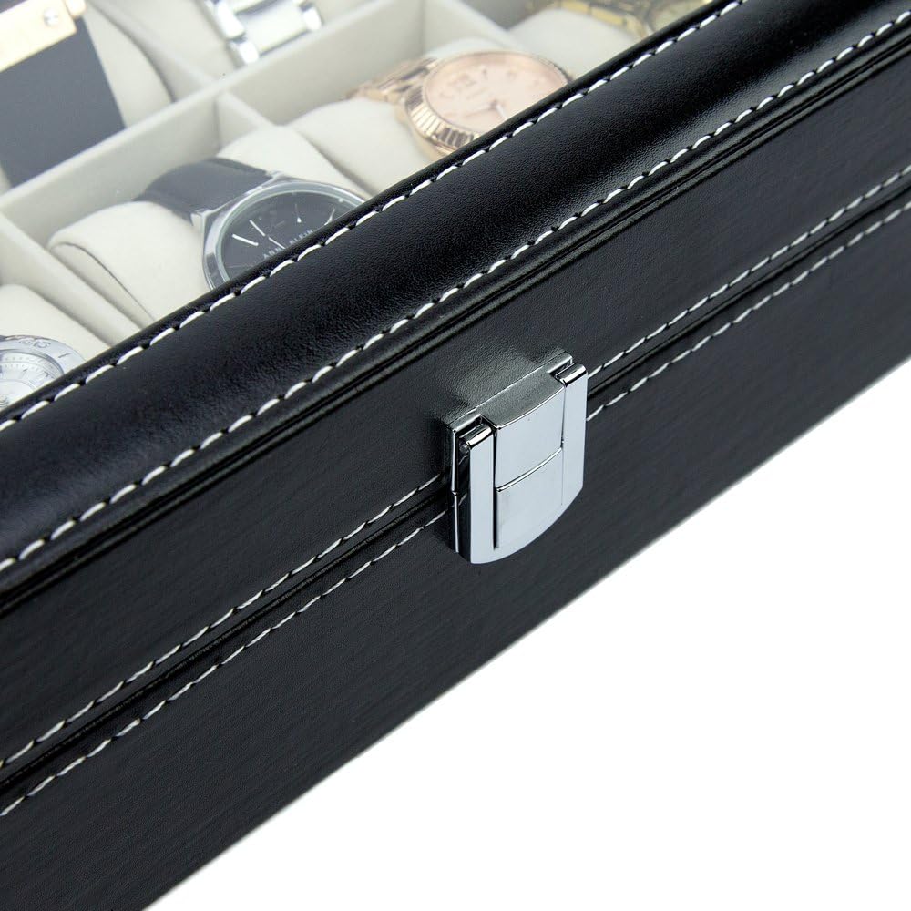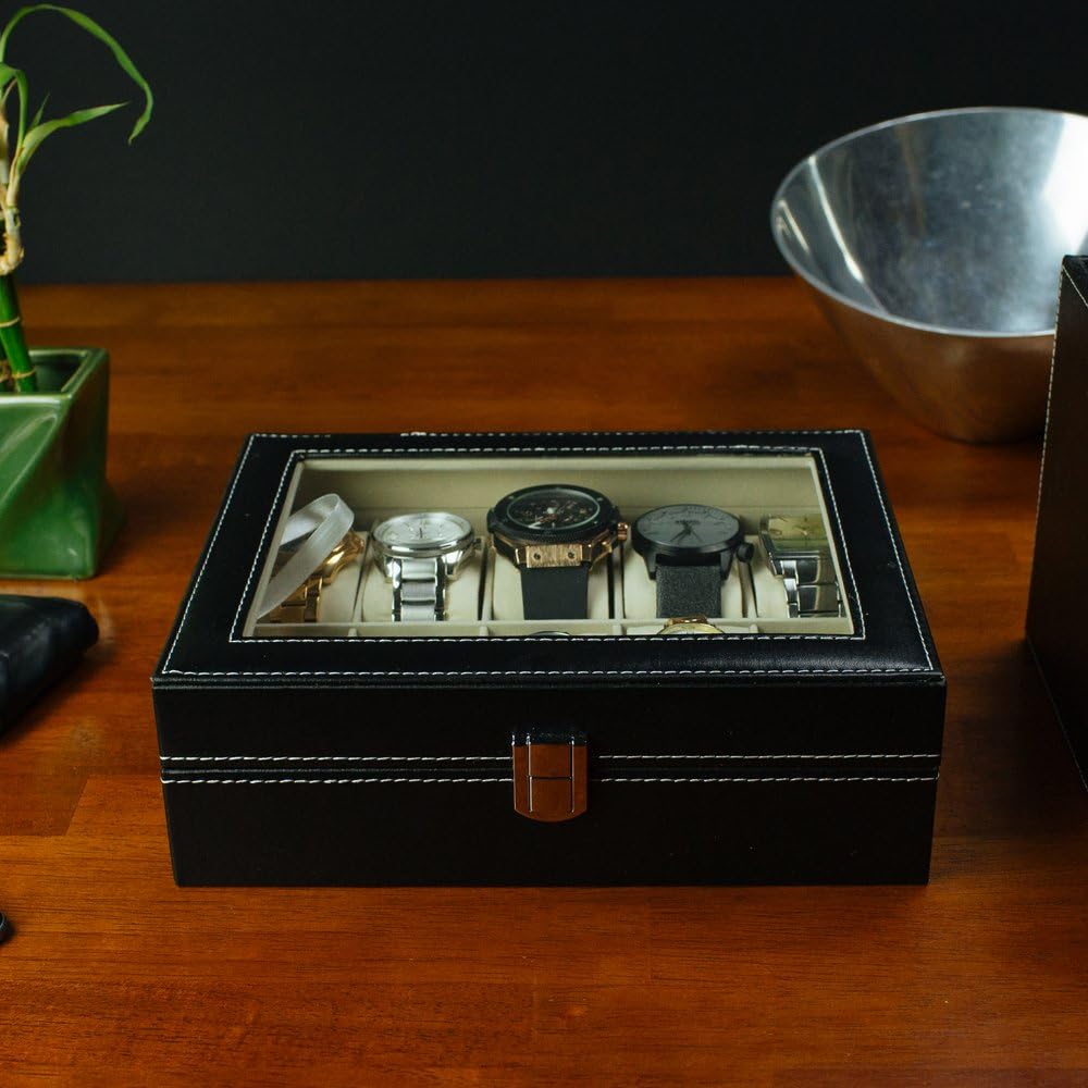 Quality PU Leather and Glass Top Watch Box – 10 slots for your beautiful timepieces